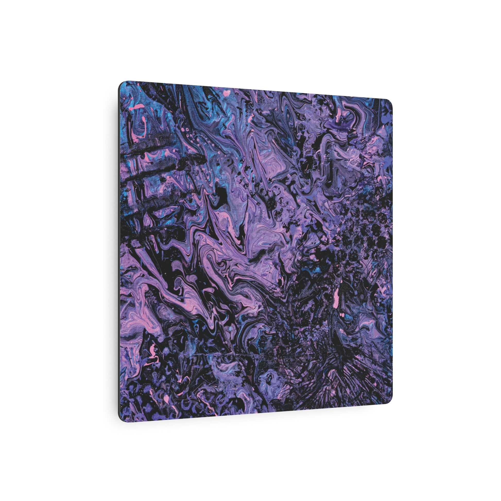 A vibrant metal wall sign that brings beauty and texture into any indoor space. The piece captures an abstract view of a hurting woman healing herself through paint. The medium running through her fingers gave her life color again. This painting used some unique tools like a human hand, comb, and bubble wrap.